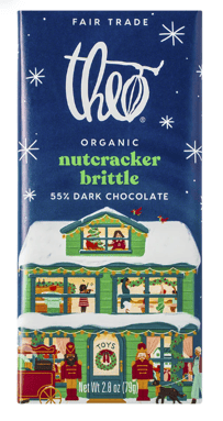 Theo’s nutcracker brittle is made with dark chocolate, ground vanilla beans and himalayan pink salt. It’s perfect if you’re looking for a sweeter chocolate bar with a lower dark chocolate percentage.