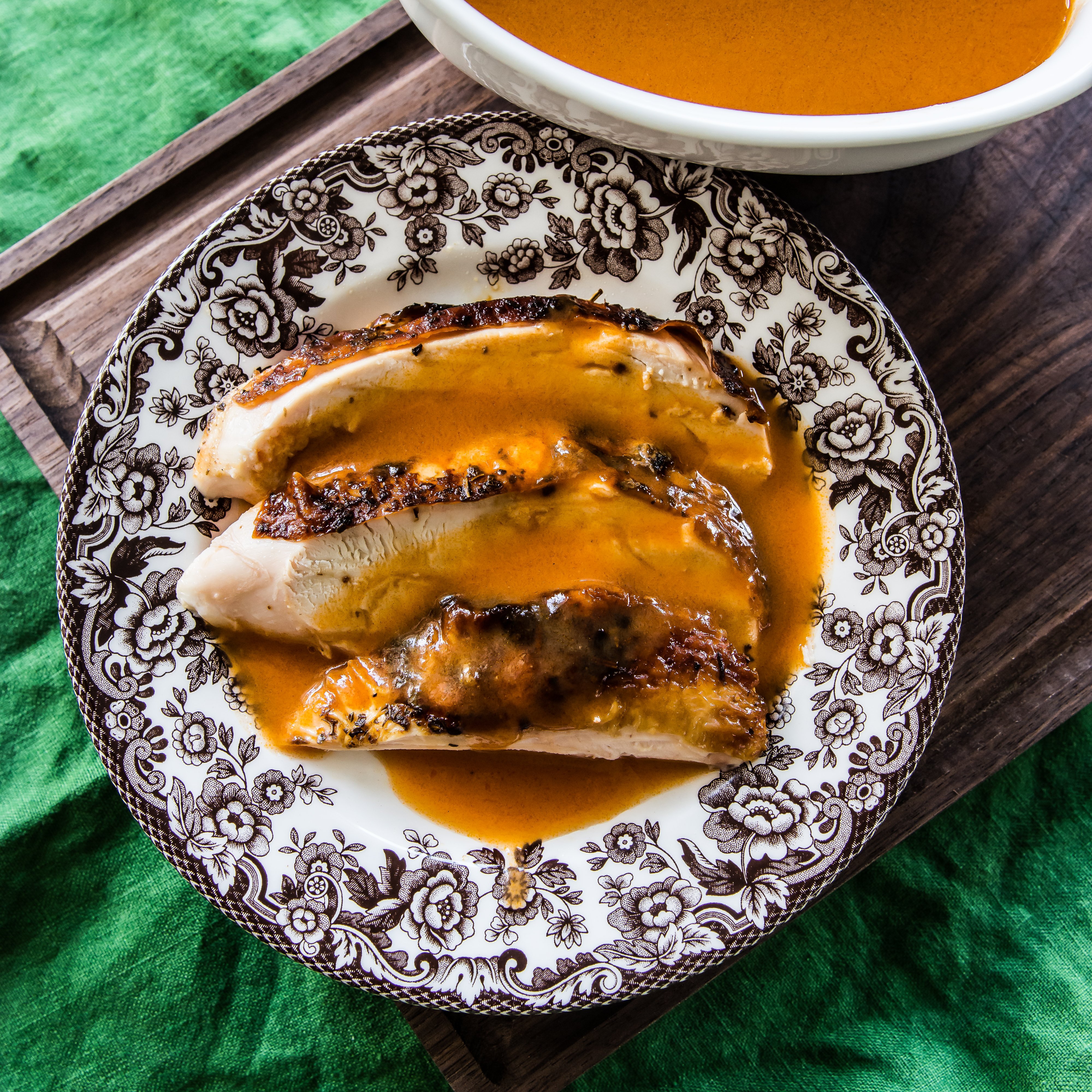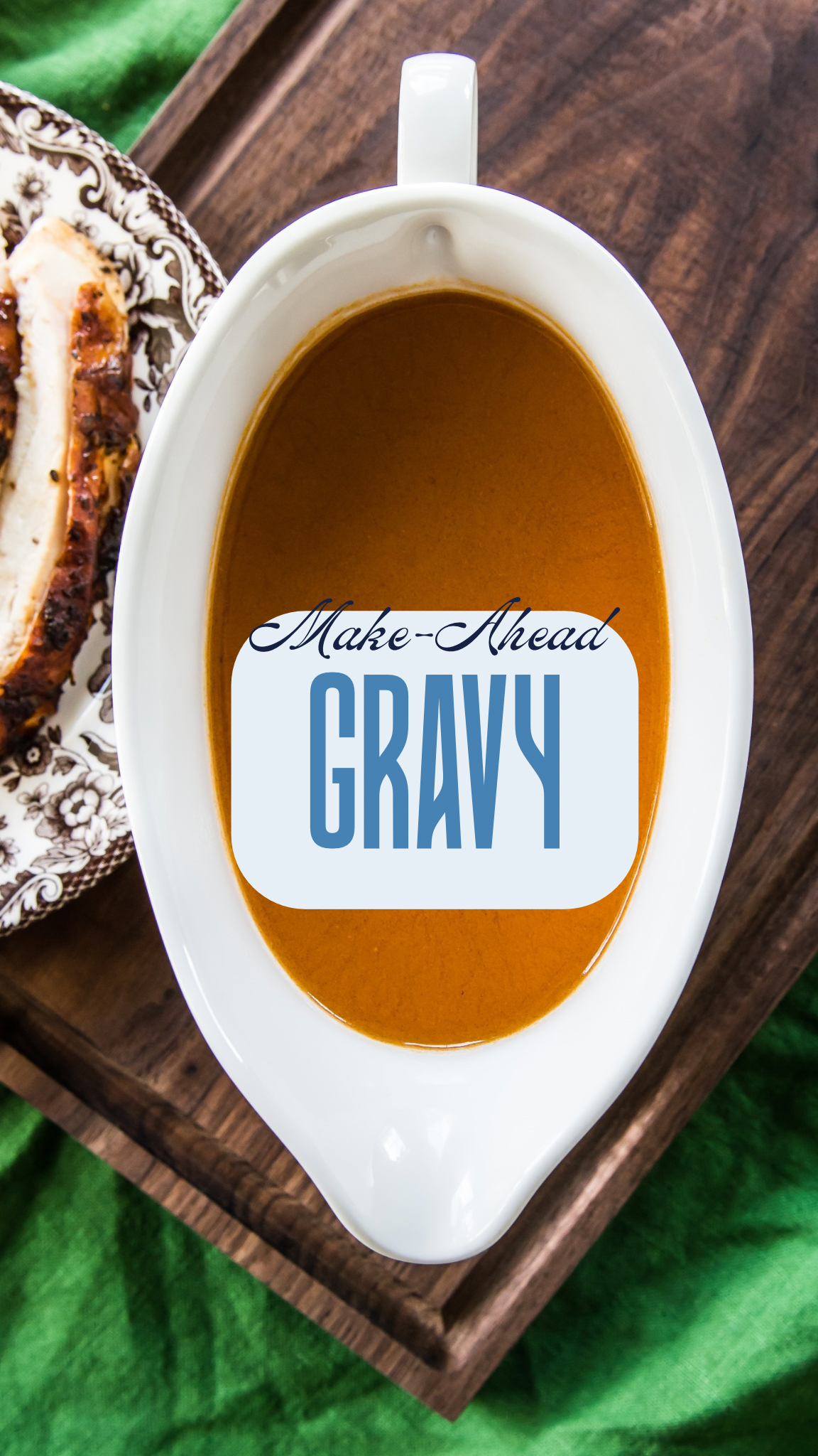 Pour the gravy through a fine mesh sieve into a storage container. Cool for 15 minutes, cover and store in fridge, up to two days before serving.