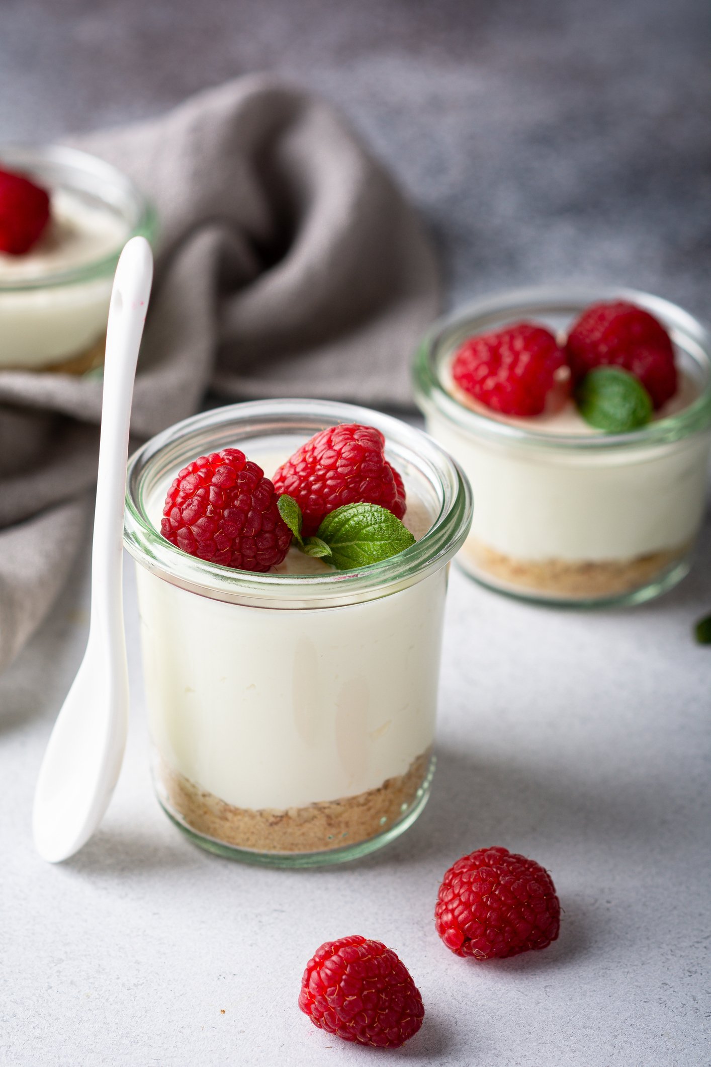 Place 3-4 fresh raspberries on top of the filling in each cup. Place the jars in the refrigerator for at least 2 hours to allow the filling to set and the flavors to meld. This recipe can also be enjoyed right away if you prefer a softer, yogurt-like consistency.